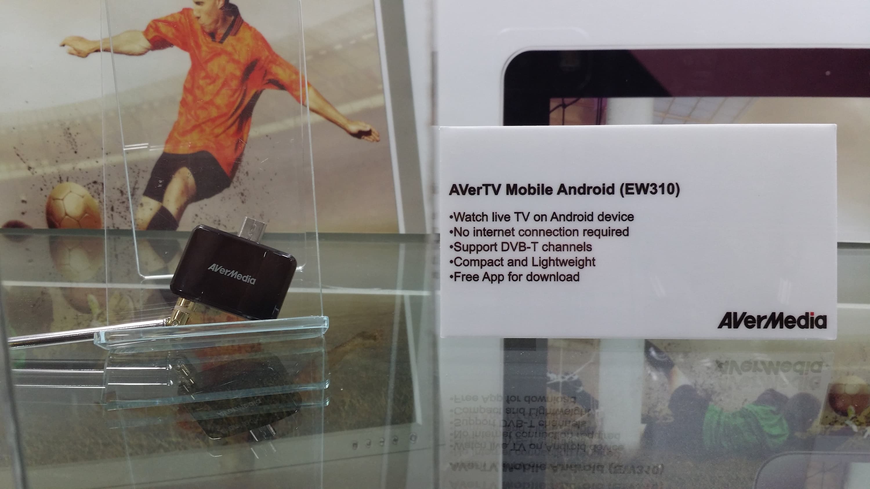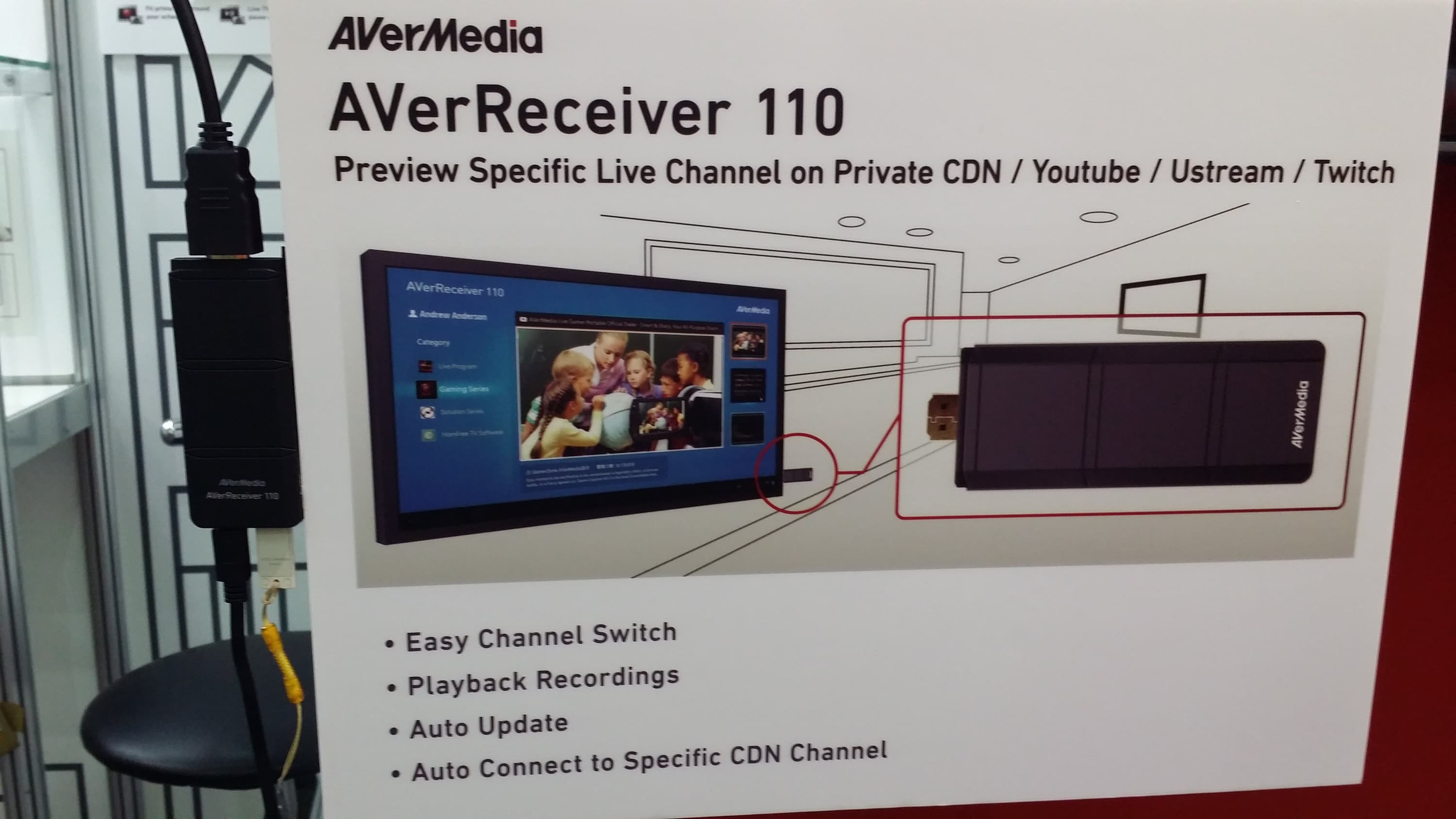 Все новинки компании кажутся одинаково любопытными и оригинальными. В первую очередь в глаза бросается миниатюрная приставка AverTV Mobile Android. К сожалению, выяснить точные характеристики устройства не представилось возможным, но наличие телескопической антенны, а также заявленная поддержка цифрового сигнала формата DVB-T позволяет предположить, что перед нами любопытная возможность оснастить смартфон или планшет цифровым ТВ-тюнером эфирного сигнала. Этот тюнер вставляется непосредственно в разъем Micro-USB, а для работы получившегося симбиоза потребуется фирменное приложение. Ну и, конечно, необходимо вещание такого ТВ-формата в вашем регионе.
