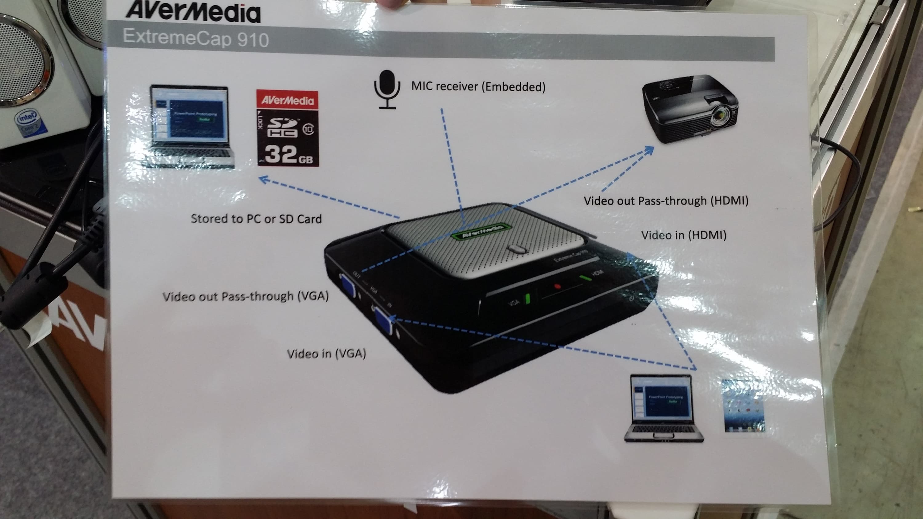 Разумеется, стенд AverMedia содержал и новинки еще одного класса аппаратов, который можно считать «нишевым». Речь об устройствах захвата и записи сигнала. Среди новых моделей можно отметить EzRecorder 130, которое способно производить запись по таймеру, имеет аппаратный кодировщик и не нуждается в подключении к ПК.
