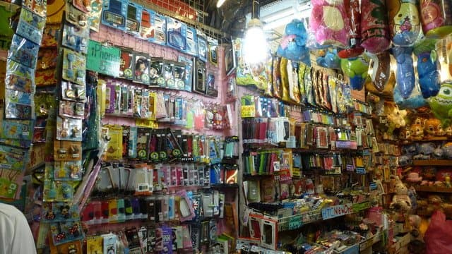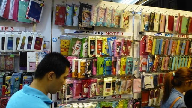 Кроме традиционных вещей типа одежды, обуви, сумок и т. п. тут можно найти просто огромный ассортимент чехлов, кожухов для мобильных устройств всех известных производителей. Встречаются буквально через 2-3 ларька. Поражают воображение огромные мягкие плюшевые чехлы для любимых «айфонов или самсунгов». Кстати, видел много таких у местных девушек. Вот им не лень вытаскивать из сумки мягкую «игрушку», а потом уже из ее недр — смартфон! Как они слышат звонок — можно только удивляться.