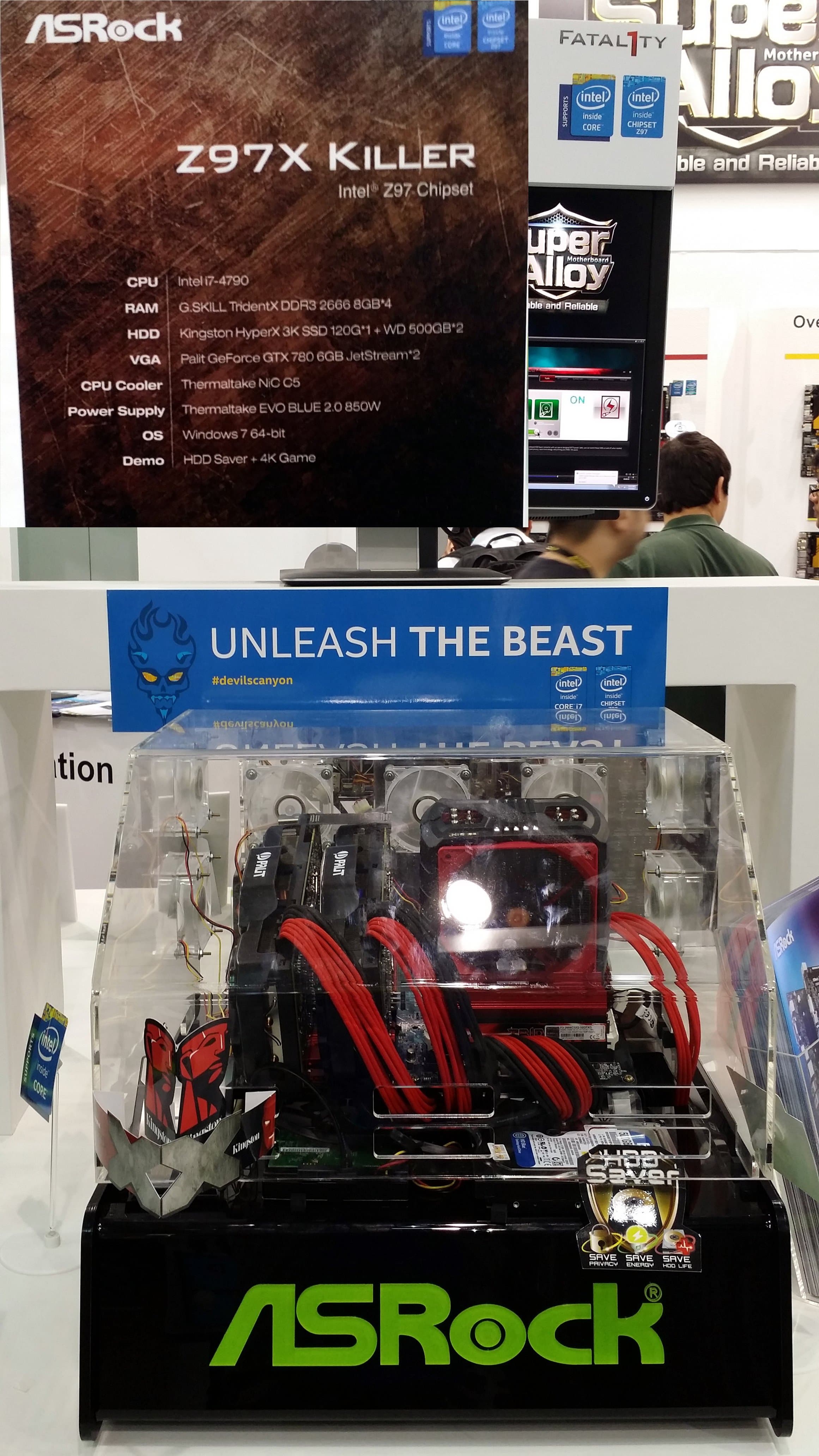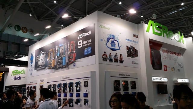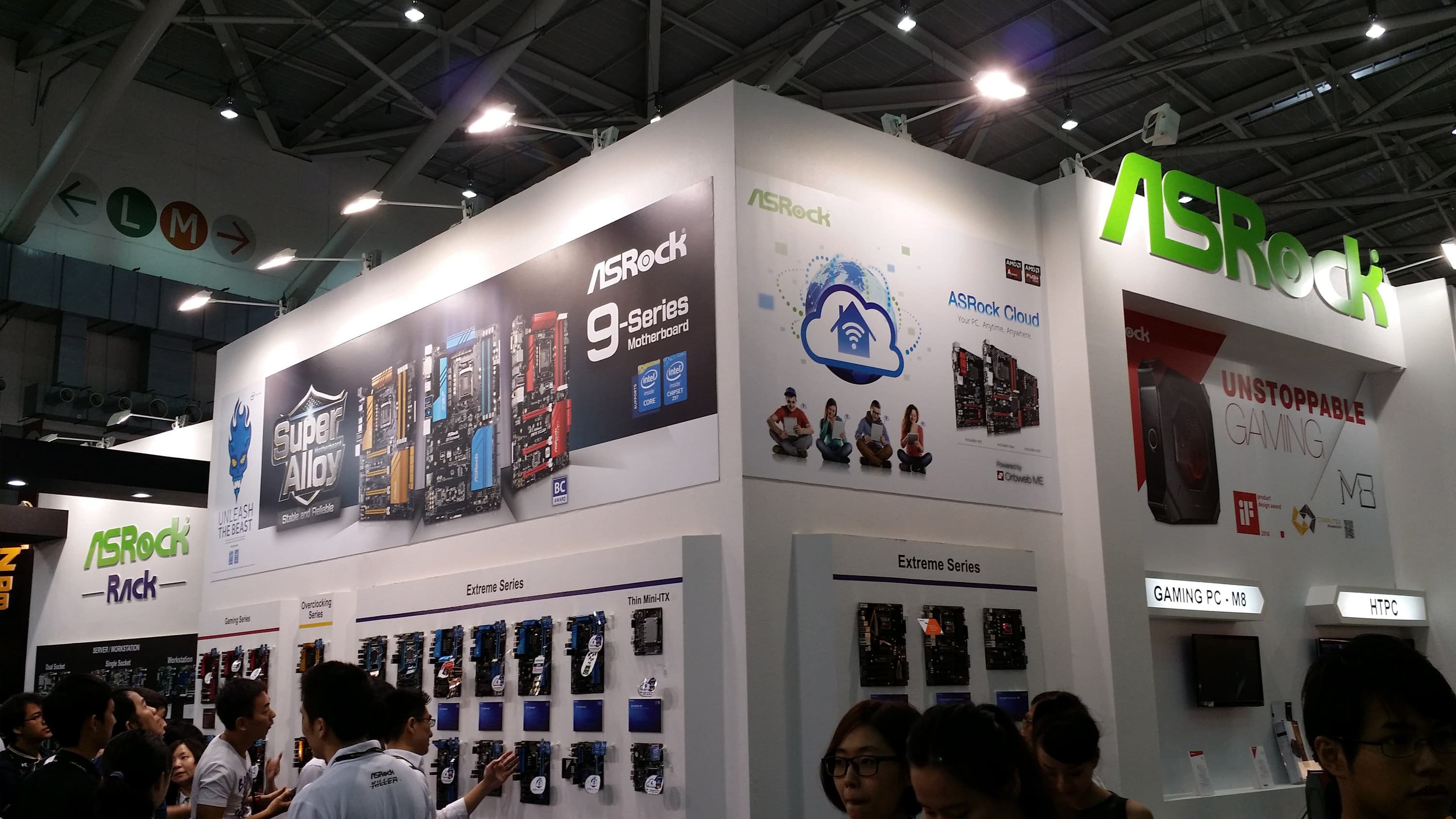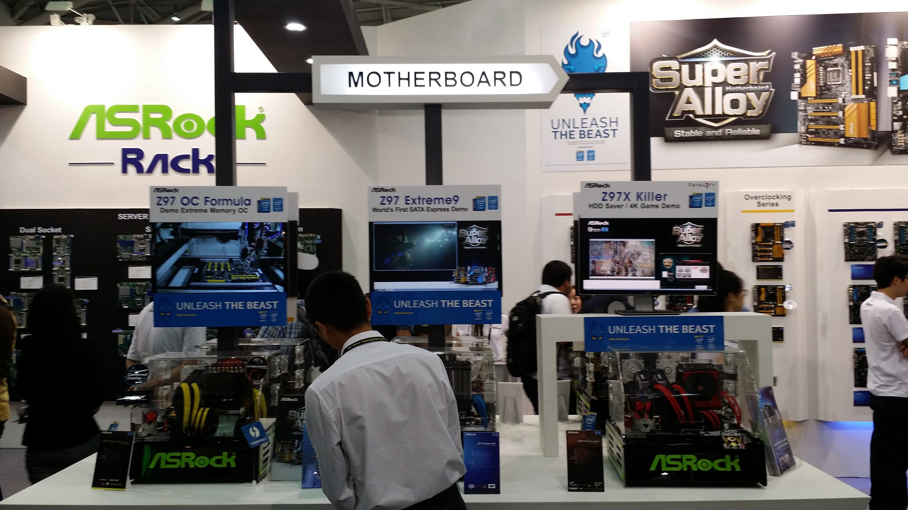 На этом я закончу рассказ о стенде компании Transcend. Пересекаем выставочный зал и попадаем к ASRock.