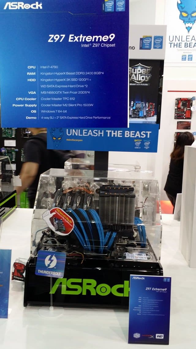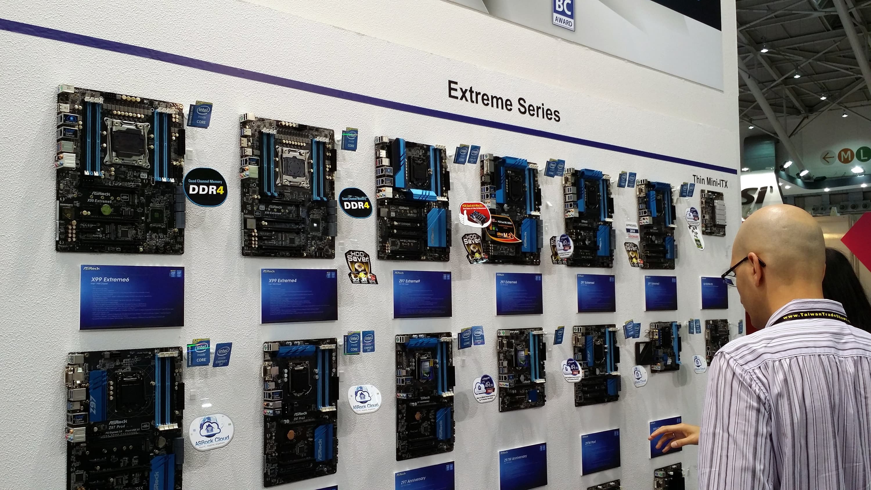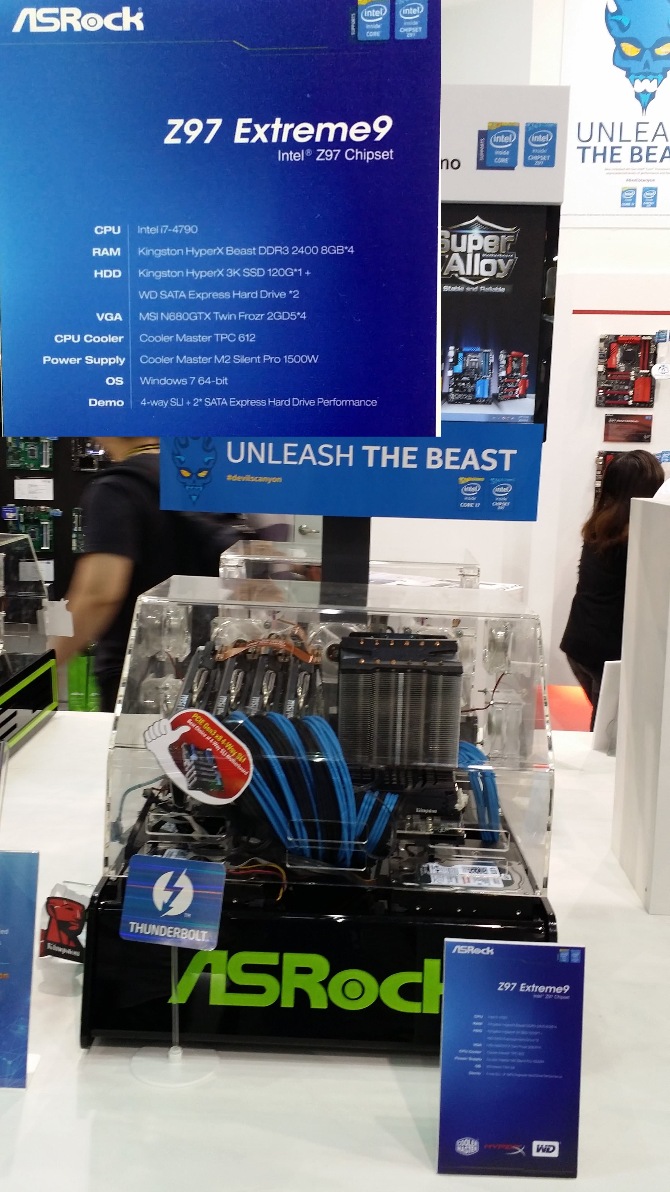 На этом я закончу рассказ о стенде компании Transcend. Пересекаем выставочный зал и попадаем к ASRock.