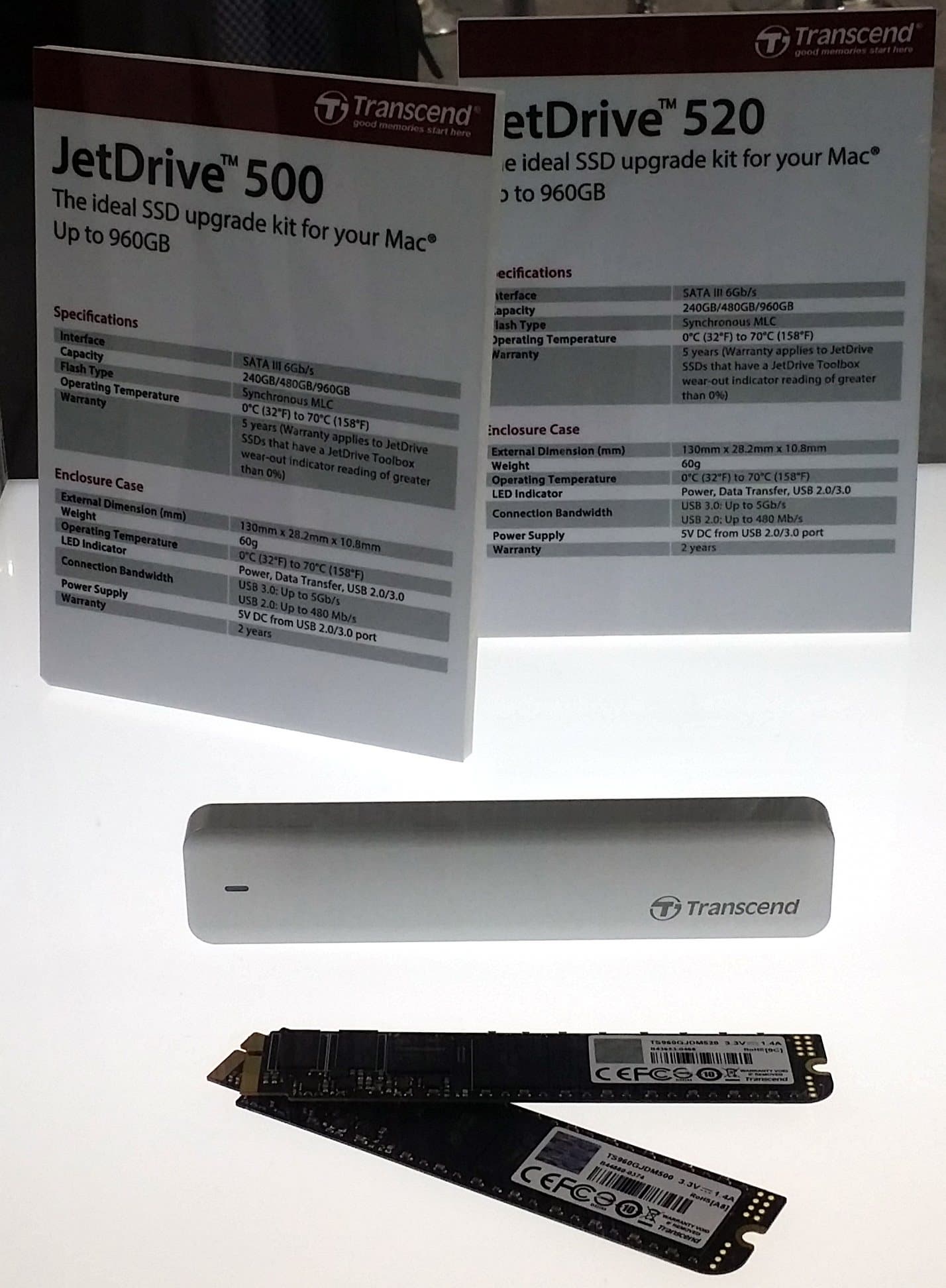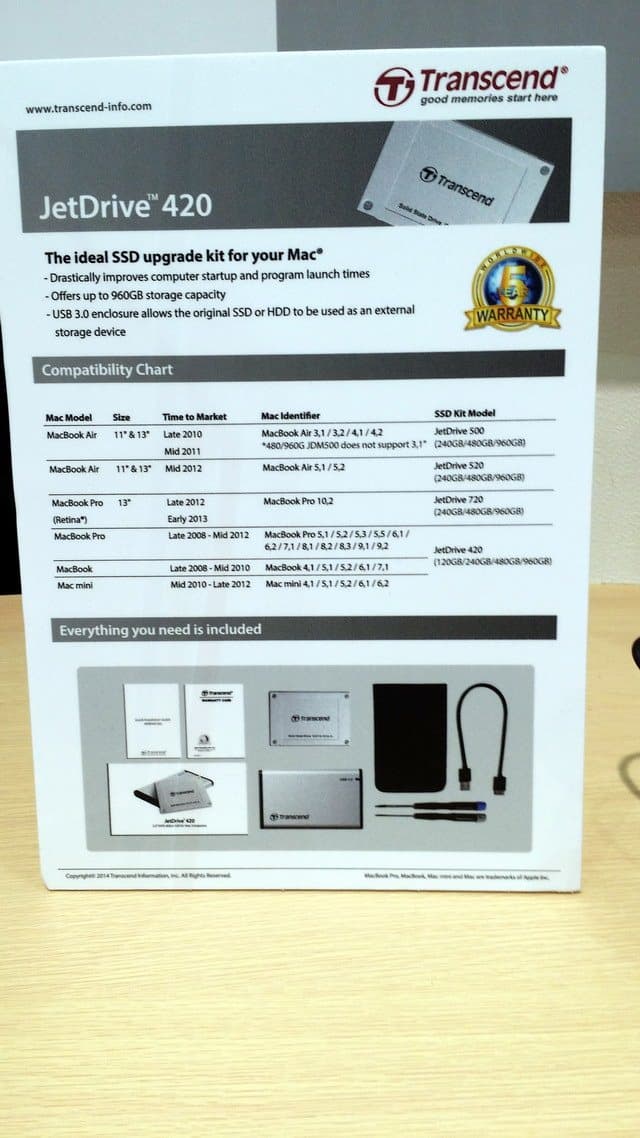 Компания Transcend с гордостью демонстрирует свое сотрудничество с компанией Apple. Всем известно, что последняя крайне трепетно относится к качеству комплектующих для своих продуктов и заключает контракты на поставку компонентов только с очень проверенными и надежными партнерами. И даже если это просто внешний SSD-накопитель для серии Mac, был пройден весьма долгий путь проверок, тестов и подписаний соглашений. Номера моделей SSD-китов различаются по сути только совместимостью с той или иной моделью MacBook.