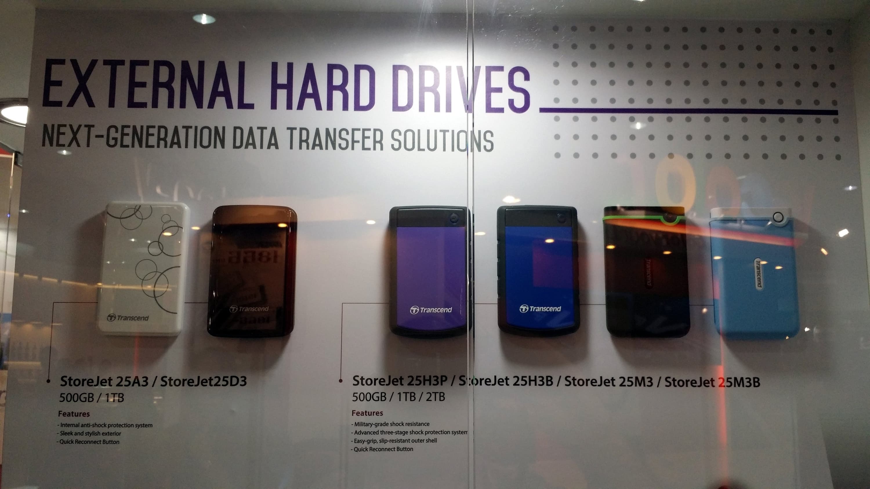 Приличное место на стенде отведено внешним USB-жестким дискам. Максимальная емкость — 2 терабайта, поддержка USB 3.0. Серии отличаются разной степенью защиты от сотрясений и ударов (включая максимальную степень — армейскую), а также наличием покрытия, стойкого к отпечаткам и иным загрязнениям. Впрочем, как обычно, все будет решать цена.