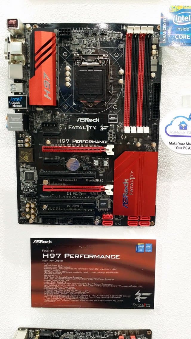 На самом стенде ASRock все это демонстрировалось. Откровенно говоря, даже если посмотреть на характеристики Z97 и H97, то особых отличий мы не увидим. По сути один и тот же чипсет, разделенный по цене на «более крутой» и «менее крутой». Считается, что Z97 более «лоялен» к разгонам и иным оверклокерским штучкам, хотя могу предположить, что вопрос лишь в заложенных оверклокерских штучках в том или ином BIOS, ну и в архитектуре и особенностях той или иной материнской платы. Понятно, что даже из одного Z97 в компании ASRock умудрились создать три флагманские материнские платы. Отличаются они именно разными возможностями по разгону, особенно касается автоматических функционалов в этом плане, когда частоты регулируются автоматически BIOS в зависимости от состояния платы (поэтому опять же заложены разные возможности по мониторингу: количество температурных датчиков, их размещение, мониторинг частот врашения вентиляторов и т.д.). Разумеется, у материнских плат разный набор слотов, портов и т.д.