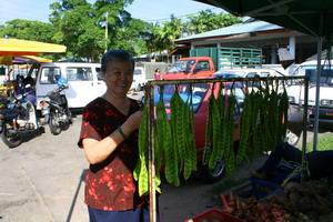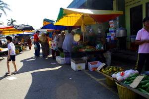 Плоды в конце концов нашли (хотя искали долго, почему-то не пользуются особым спросом, хе-хе). Мама долго и искусно торговалась, находя те или изъяны в стручках, и в результате чего торговец продал товар за полцены. :-) Аху старался при возможности переводить мне тонкости общения на малайском языке (торговец — малаец).