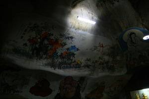 Изнутри многие стены пещеры были расписаны характерными картинами, все остальное оборудование очень искусно вплетено, вживлено в эти древние натуральные своды, потолки и стены.