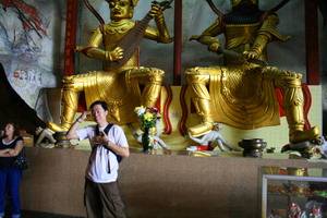 Далее мы все мы под ливнем пробежали по дорожкам под навес, где вход в храм и торговые палатки, Аху попросил зонтик у продавщицы, под ним сбегал к машине, пригнал ее ко входу, вернул зонтик, и мы поехали дальше.