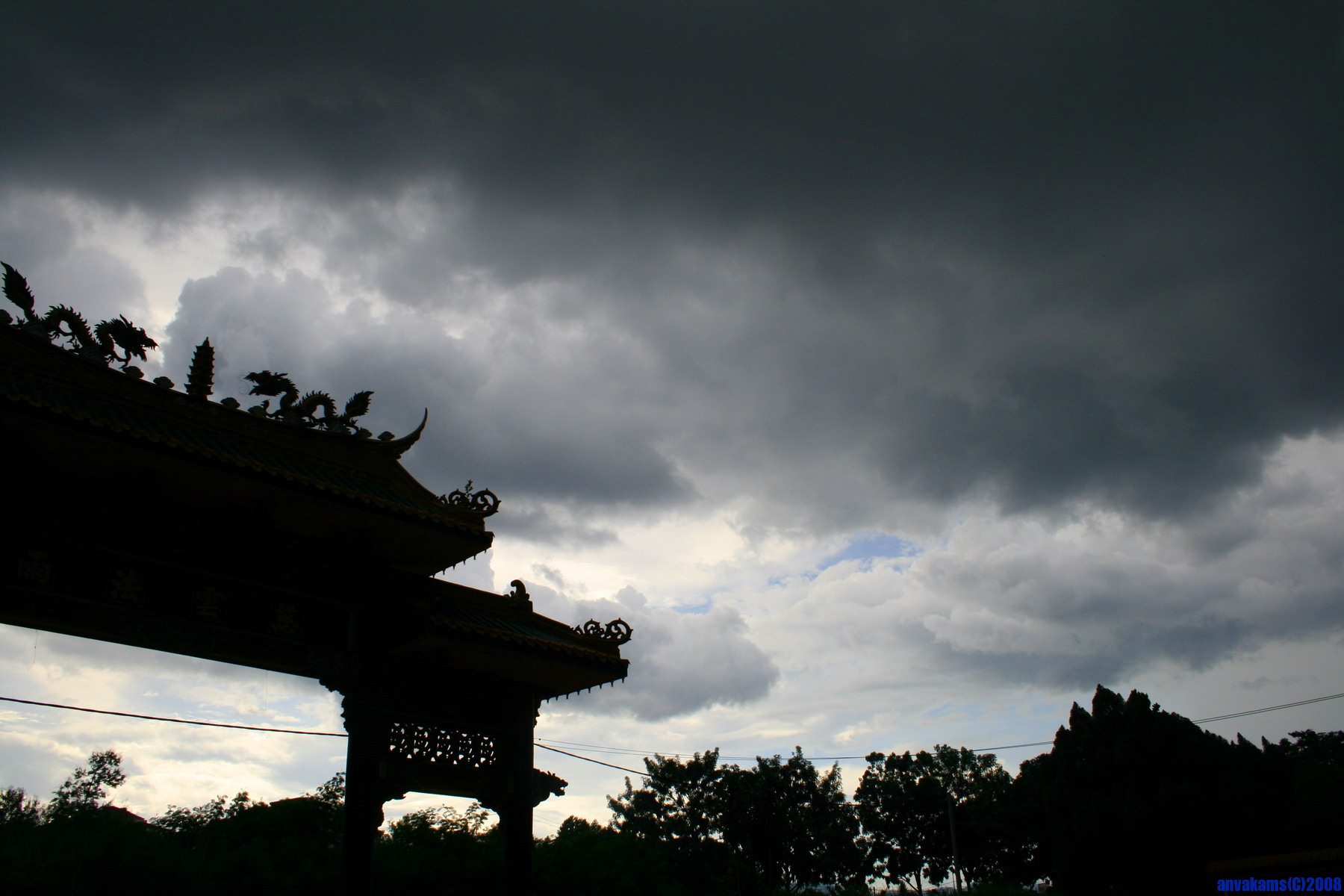 Да, гроза вышла из-за горы, уставилась на нас ненавидящим серым взором, налилась злобой, которая переросла потом в обиду, и расплакалась ливнем, загнав нас в беседки около храма.