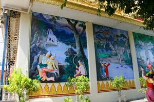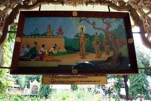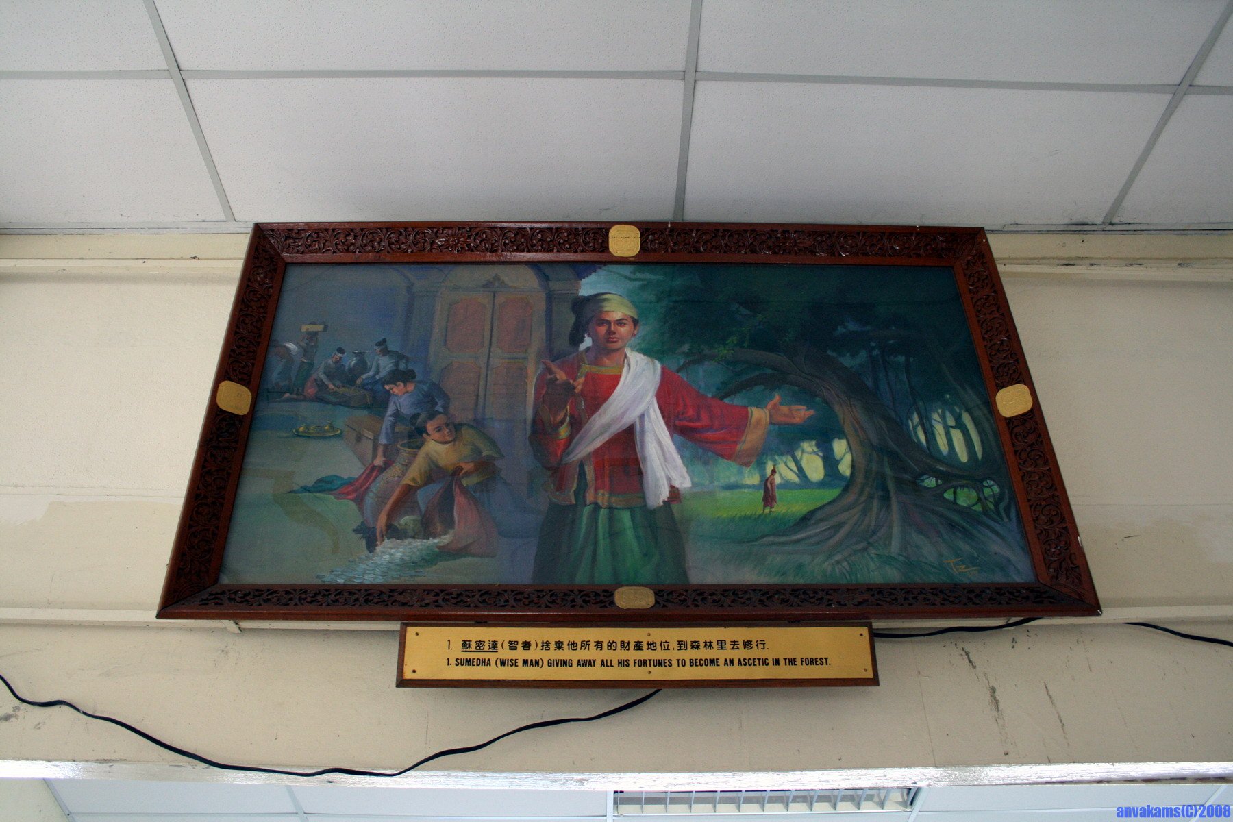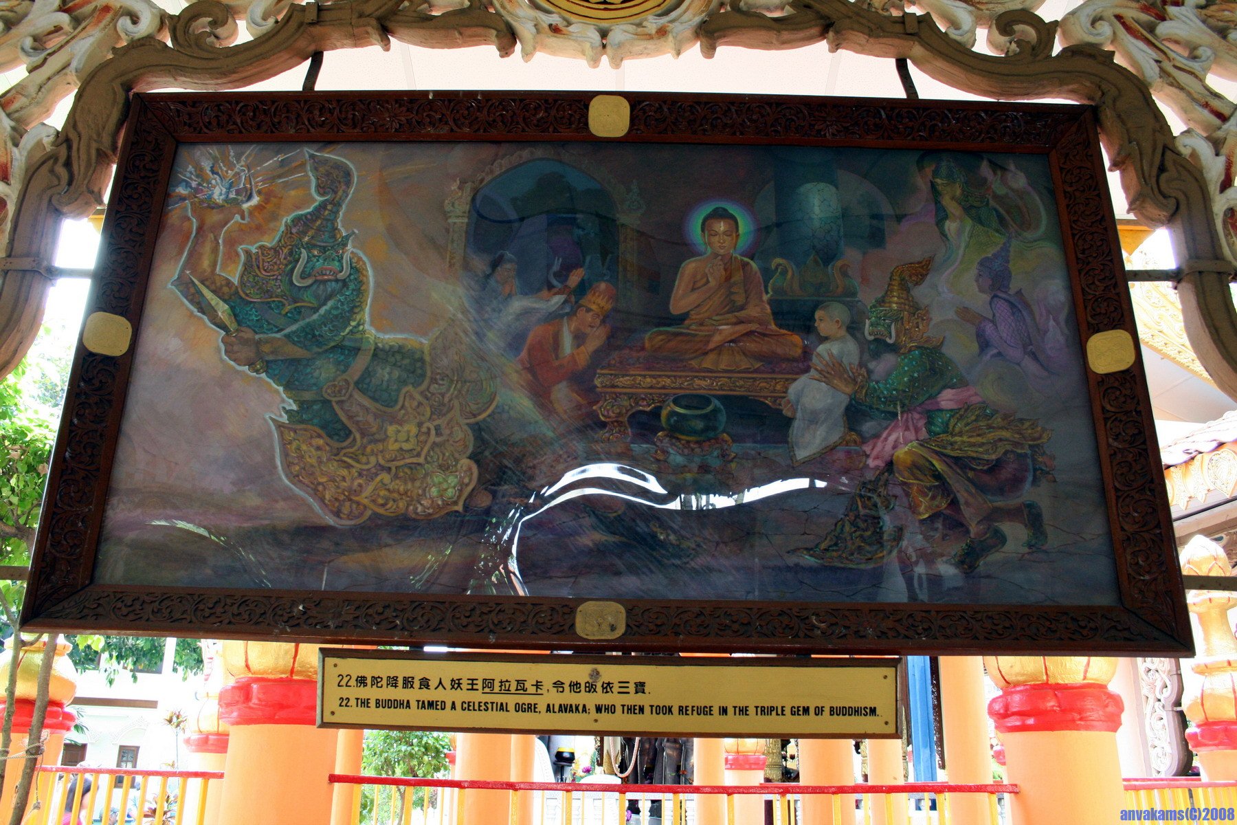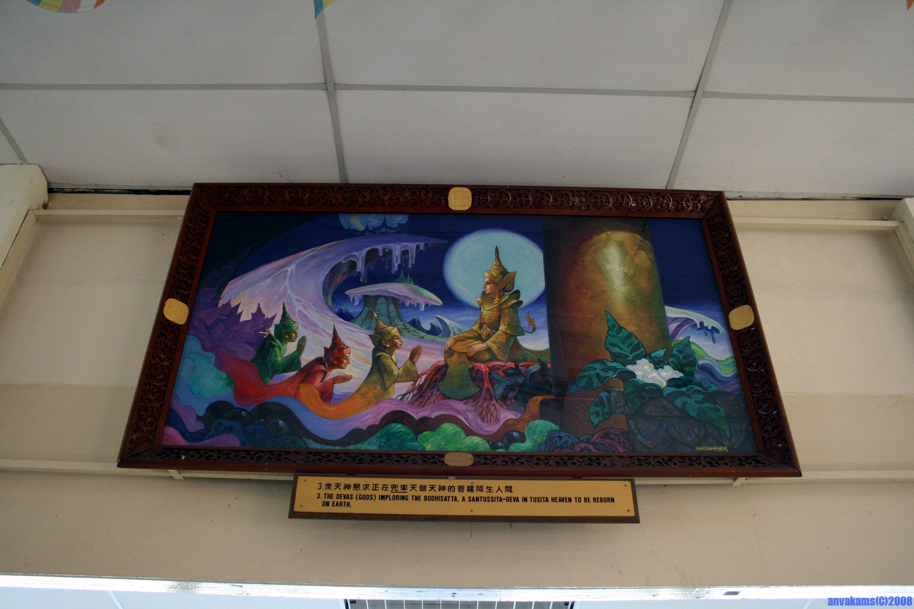 Еще когда мы проходили по длинной террасе первого храма я приметил иллюстрированную историю появления Будды, написанную в 30-ти картинах.
