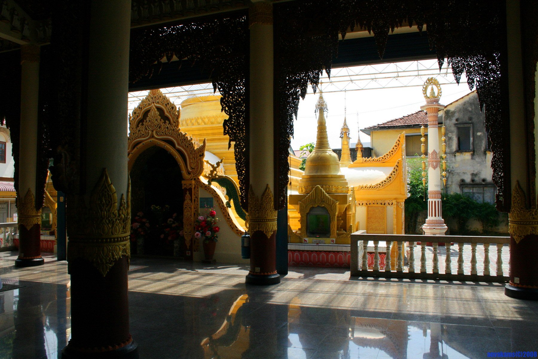 | Первый выден издалека и поражает ярким сиянием. Вообще этот храм почти весь покрыт позолотой в области крыши. Второй выделяется позолоченой высокой пагодой. |