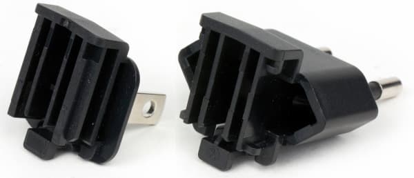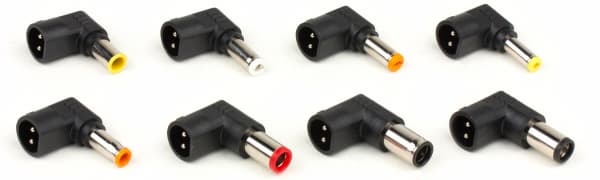 Сам адаптер выполнен в виде прямоугольной коробочки, подключаемой непосредственно в розетку с помощью одного из двух сменных штекеров — с плоскими ножевыми контактами («тип А», для американских розеток) и с круглыми контактами («тип C», для европейских). К нагрузке он подключается с помощью длинного, целых 2,5 метра, кабеля сечением 0,5 мм² (20AWG), снабженного застежкой-«липучкой». На конце кабеля имеется разъем, к которому подключаются переходники для разных ноутбуков, которых в комплекте восемь штук, закрепленных на общей обойме. По заявлению производителя, их достаточно для работы с ноутбуками двух десятков производителей, и единственное ограничение — напряжение питания должно быть в диапазоне 18–20 вольт, а потребляемая мощность — не более 65 ватт.