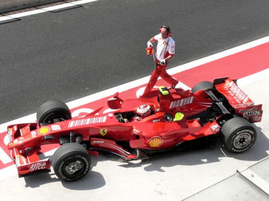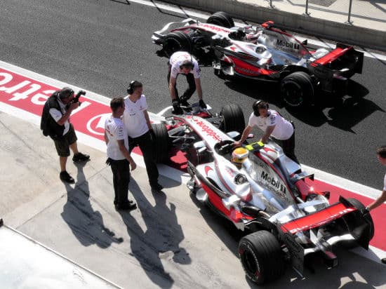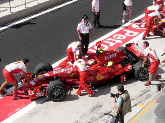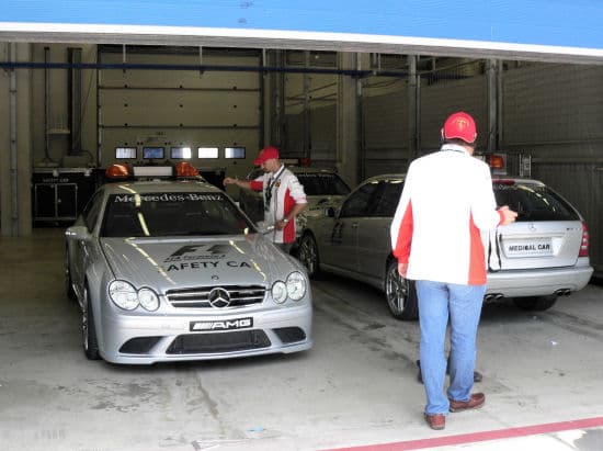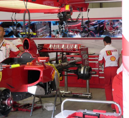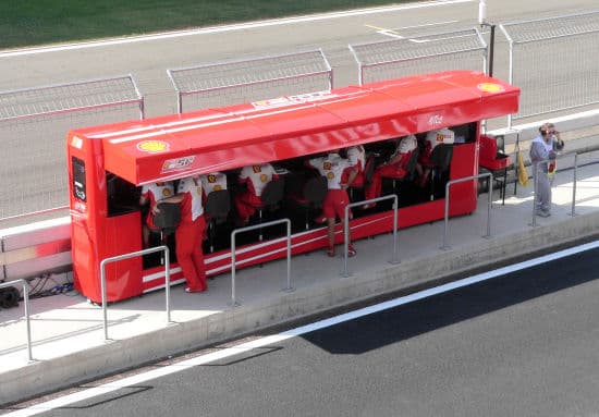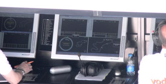 У машин Ф1 коробка передач настроена под езду на высокой скорости, поэтому тронуться им сложно — надо раскрутить двигатель, а потом бросить сцепление — машина, пробуксовав по бетону, прыгнет вперед и выйдет на дорожку пит-лейна. Это же приходится проделывать, когда машина заезжает в боксы: ей нужно встать под углом к трассе, после чего механики уже вручную закатывают машину в бокс. Так вот, каждый раз, чтобы проехать немного вперед, машина дает газ (представьте себе звук!!!) и, взвизгивая резиной по бетону, прыгает метра на три вперед, выворачивая к пит-лейну, после чего мотор глушат и механики закатывают ее в бокс. А на свободных заездах машины заезжали в боксы достаточно часто…