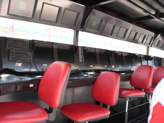 На втором этаже расположены комнаты команд — большие кондиционированные помещения, внутри которых находятся столики и большие экраны. Вдоль здания с одной стороны идет ряд трибун, выйти на которые можно прямо из зоны команд, с другой (над грузовиками) — длинная галерея вдоль всего здания, где находятся входы в зоны команд. Машины выезжают прямо из-под трибуны и уносятся по пит-лейну.