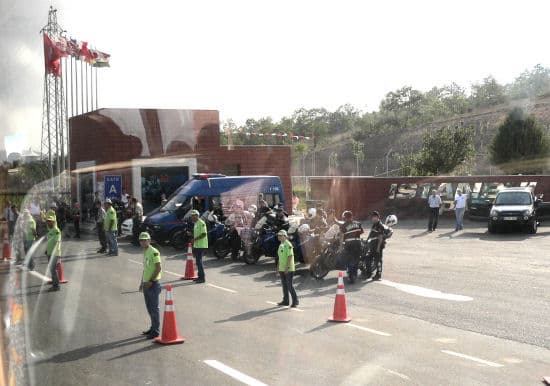 Интересно, что внутри зоны команд обслуживает одна фирма, независимо от этапа. У нас весь обслуживающий персонал был из Австрии. Охрана — половина на половину, есть и турки, есть и европейцы. Охраны, кстати, было очень много, практически около каждой двери. Вся охрана очень вежливая, плюс, мимо нее нам удавалось проскочить в места, куда, теоретически, нам ходить было нельзя (например, на одну из башен, куда мы пробрались позже). К сожалению, была закрыта вторая башня, с которой открывался вид на поворот перед финишной прямой.