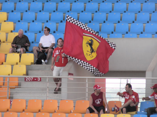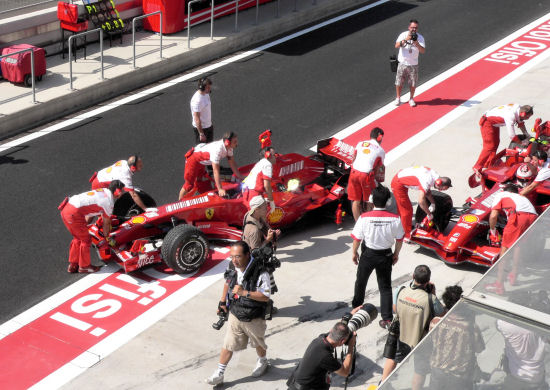 Как гости AMD, т. е. гости команды Феррари (Scuderia Ferrari, если уж совсем придерживаться термионологии), мы находились не на трибунах, а с другой стороны стартовой прямой, в основном здании, в зоне команды Феррари, прямо над боксами команд, напротив центральной трибуны. Правда, именно наш балкон зоны Феррари находилась над зоной команды VodaFone McLaren Mercedes, а сами боксы Феррари были правее.