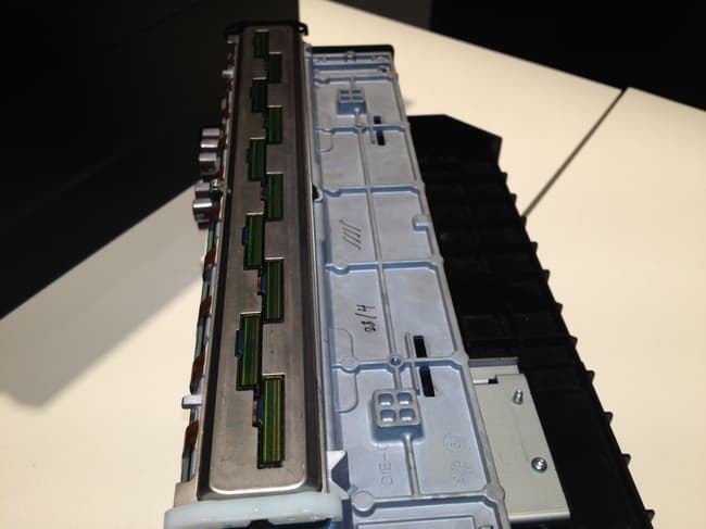 Этого удалось достичь благодаря новой печатающей головке — фактически, инженеры взяли несколько печатающих головок струйного картриджа и расположили их так, чтобы по ширине они перекрывали всю страницу А4.