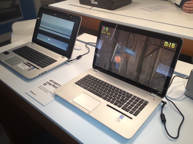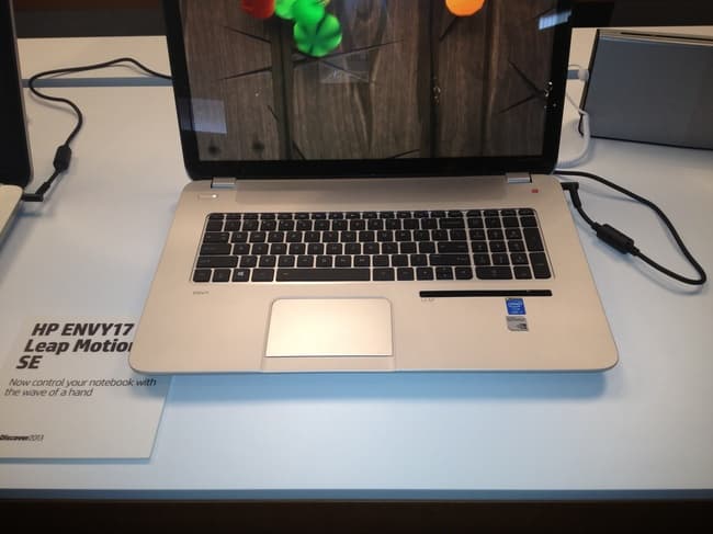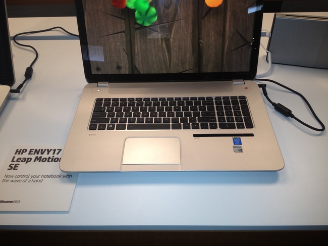 На одном из стендов стояли новые ноутбуки Envy 17 с технологией Leap Motion, которая позволяет управлять ноутбуком с помощью жестов. Это можно использовать либо для управления некоторыми функциями (например, перелистнуть страницу или текст) либо в играх.