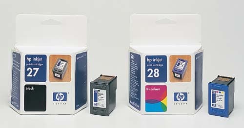 Для того, чтобы добиться высокого качества отпечатков в условиях ограниченного рабочего пространства внутри принтера, обусловленного его компактным дизайном, в компании HP разработали новый тип картриджей: черный струйный картридж №27 и трехцветный струйный картридж №28.
