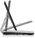 Вот в серии HDX это попробовали решить. Здесь используется оригинальное шарнирное соединение обеих половинок устройства, что позволяет ему оставаться носимым, но на столе не уступать по удобству моноблоку. Ну, разве что, слишком далеко клавиатуру не выдвинешь, но не так уж оно и нужно. По функциональности же и производительности устройство ничуть не уступает моноблокам, да и многим десктопам тоже. Судите сами: