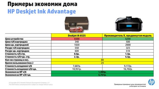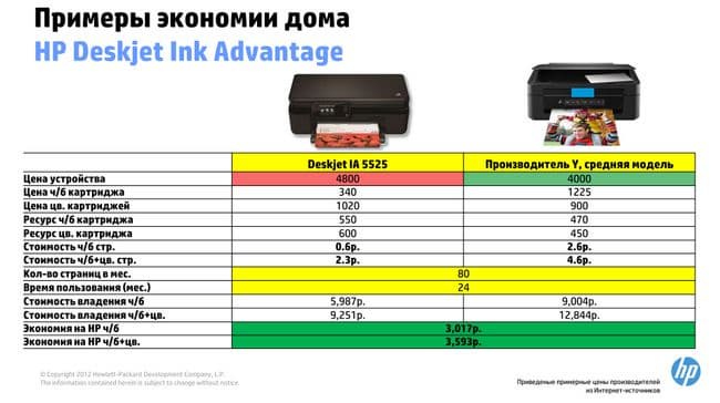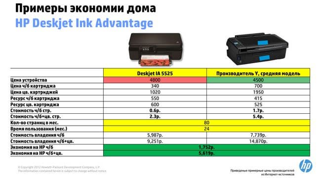 Здесь экономия еще более впечатляющая, особенно для цветных чернил.