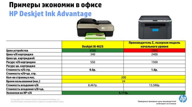 Абстрактно также кажется, что 20% — вполне себе немаленький рост. Однако, например, для одной из средних моделей разница в цене составляет всего 400 рублей (2000 против 2400 руб.). Давайте вместо «цена на новый МФУ НР выросла на 20%» напишем «Новая модель будет стоить на 400 рублей дороже». Согласитесь, отношение мгновенно поменялось. Ибо 400 рублей — абсолютно не те деньги, которые стоит выкраивать на устройство, которое вы покупаете на несколько лет. Тем более, что уже при покупке вы знаете, что картриджи под него работают вдвое больше при той же цене, так что чем больше вы печатаете, тем дешевле вам обойдется весь набор.