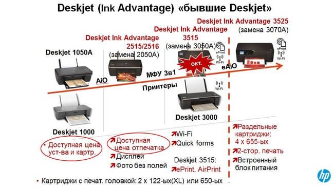 До середины 2012 года линейка струйных принтеров и МФУ НР выглядела следующим образом: