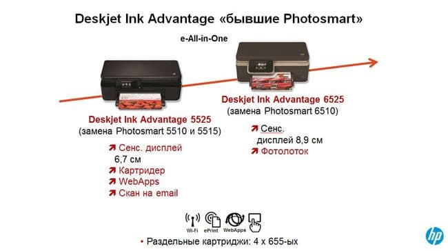 Все новые модели линейки Ink Advantage работают с двумя новыми сериями картриджей 650/655 (младшие/старшие модели).