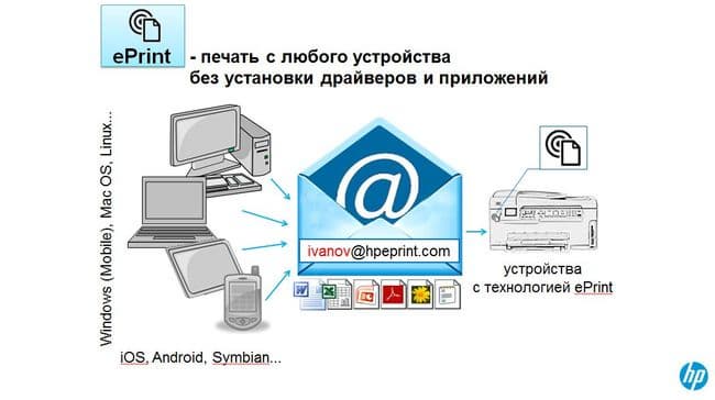 Технология ePrint позволяет печатать из любого места и с любого устройства, в том числе и с мобильных устройств. Хотя теперь у владельцев принтеров НР и мобильных устройств появились новые возможности:
