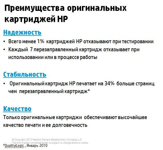 Практически на всех презентациях компания уделяет время рассказу о преимуществах оригинальных расходных материалов.