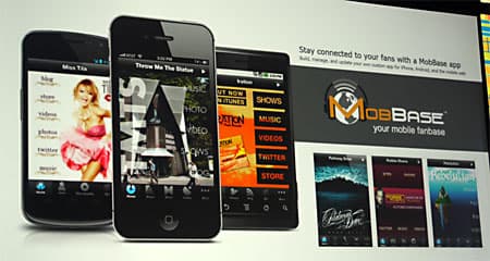 Затем на сцене продемонстрировали платформу для создания мобильных приложений MobBase, которая теперь перенесена на HTML5. С помощью MobBase обычные пользователи (в данном случае целевой группой являются музыканты) могут довольно быстро создавать мобильные версии своих сайтов с некоторым набором сервисов — включая, например, связь с социальными сетями или с магазином, где продаются треки.