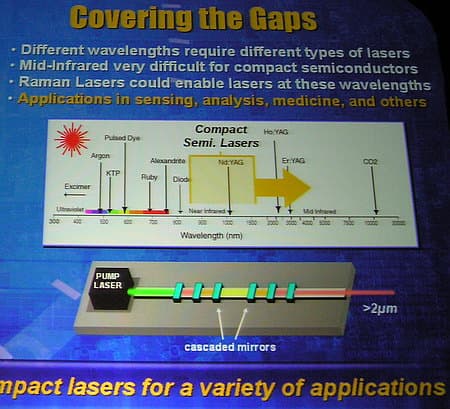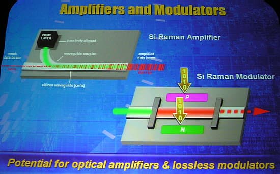 Использование кремния в качестве материала для создания лазера и для многократного усиления ИК-излучения (благодаря гигантскому, примерно в 20000 раз эффекту Рамана),