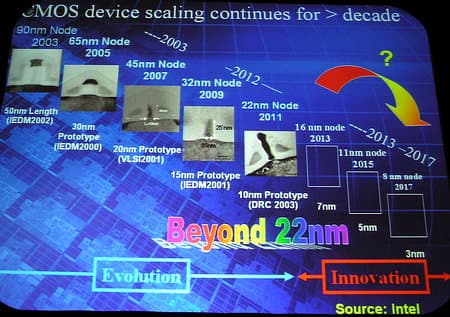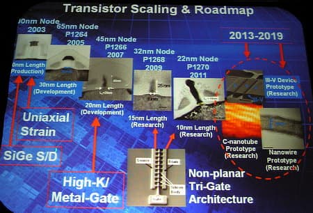 Лет 10 назад ученые предрекали большие проблемы при переходе к 100-нанометровым приборам, но, к счастью, этого не случилось, и нынче у лидеров отрасли есть хорошо изученные перспективы развития традиционной кремниевой технологии с планарными КМОП-транзисторами еще лет на 10 вперед (см. слайд).