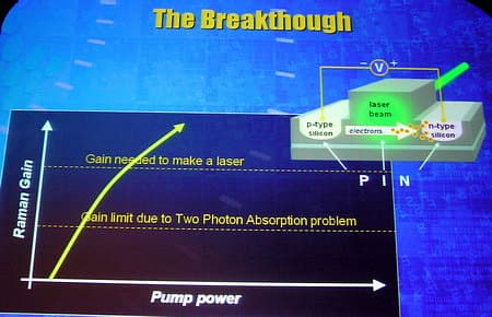 Не вдаваясь в подробности, отметим, что для того, чтобы создать такой лазер на кремнии, ученым Intel пришлось решить важную проблему — так называемой «двухфотонной абсорбции», которая ранее препятствовала созданию непрерывного лазера на кремнии.