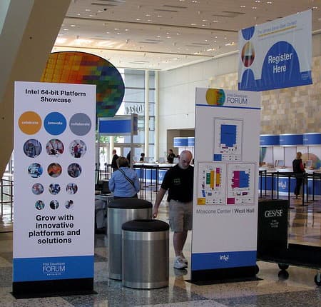 Нашим постоянным читателям, наверное, уже нет нужды объяснять, что такое Intel Developer Forum и «с чем его едят». Это мероприятие, регулярно в течение многих лет проводимое корпорацией Intel и ее ближайшими друзьями по IT-цеху, имеет свои индивидуальные особенности, отличающие его как от различных компьютерных выставок (вроде CeBIT, Computex, Comdex или CES, где сотни и тысячи производителей IT-продукции хвастаются своими достижениями с целью их повыгоднее продать), так и от крупных мировых научных и технических конференций (вроде Material Research Society Meeting, IEEE и других подобных, где сотни ведущих мировых институтов и исследовательских лабораторий сообщают о новейших научных открытиях, изобретениях и технологиях, внедрением которых предстоит заниматься еще немало лет). На мой взгляд, IDF все же ближе именно к последним, чем к первым. Поскольку Intel, расходующая на Research & Development более 4 миллиардов долларов ежегодно, на IDF как раз старается продемонстрировать не столько текущие и готовые к выпуску на рынок продукты (микропроцессоры, платформы и пр.),
