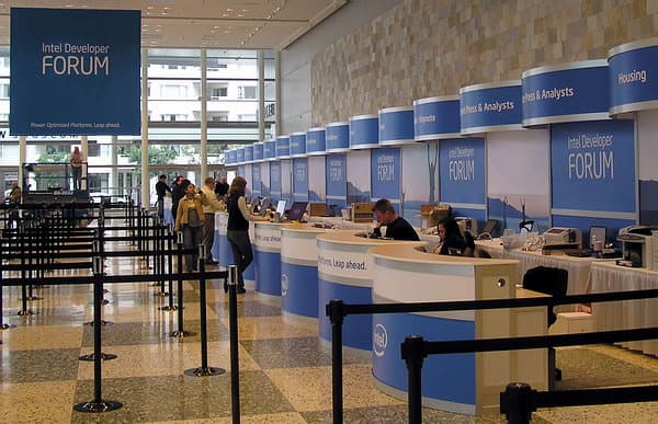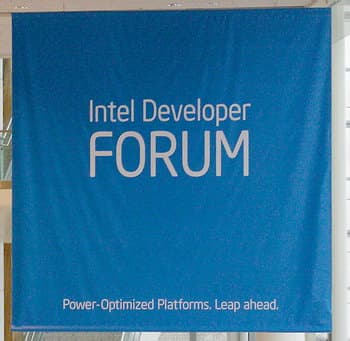 Взгляд сразу отмечает некоторую смену оформления IDF — с непривычки привлекает внимание новое написание имени компании, а все надписи теперь выполнены новым корпоративным шрифтом — в соответствии с произведенной в январе этого года сменой «имиджа» компании.