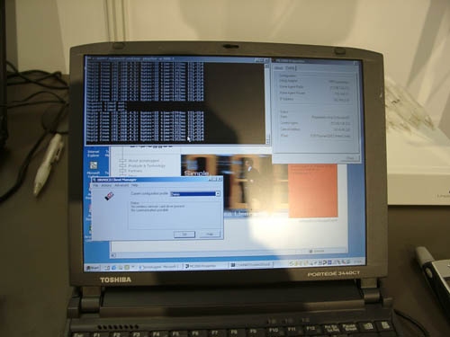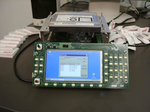 На многих стендах можно было увидеть тестовые платформы для КПК, в частности, для испытания процессоров, созданных по технологии Xscale и обкатки программного обеспечения. Так как на этих процессорах может работать не только РРС2002, но и другие операционные системы, то и на стенде они представлены в одном устройстве. В разных банках флеш памяти записаны различные ОС, простым поворотом веньеров вы можете выбрать их, запустить и посмотреть как они работают на данном аппаратном дизайне. Для разработчиков это незаменимое средство, ведь вы получаете не просто тестовую платформу, а платформу на которой можно изменять практически все, вы просто проектируете свою систему на ходу и смотрите на ее стабильность.