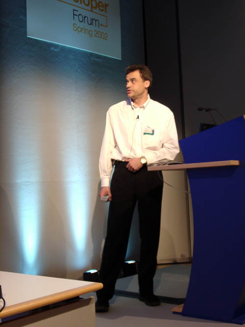 Но в нашем представлении Intel все-таки скорее компьютерная компания и ее представители решили это лишний раз продемонстрировать. Много говорилось о платформе для современных компьютеров, в частности рассматривался недавно анонсированный чипсет i845G и в очередной раз был старательно обойден вниманием вопрос о поддержке этим чипсетом памяти DDR333. Зато в ближайших планах компании фигурирует архитектура под новое процессорное ядро Prescott, с ее помощью на ПК планируется добавить многострадальную DDR333, Serial ATA, Wireless, 3GIO, а также внести в мир персоналок новый форм-фактор. Планируется, что процессор с кодовым именем Prescott будет показан во втором квартале 2003 года, с его появлением и в настольных компьютерах появится технология Hyper-Threading. На закономерный вопрос из зала, а нужна ли она там, последовал лаконичный ответ, сегодня не нужна, а завтра она потребуется.