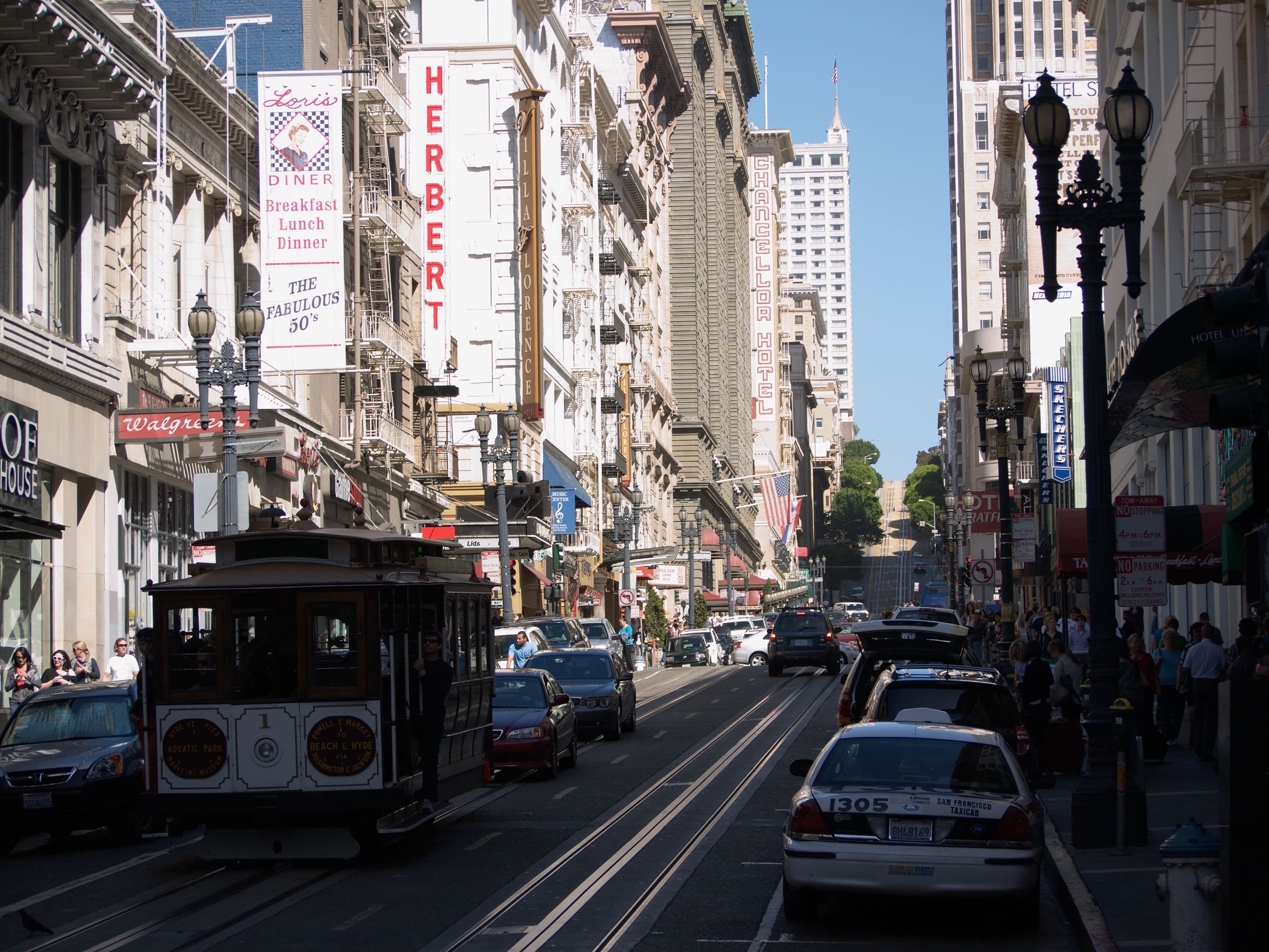 Не в последнюю очередь из-за горок, среди приезжих очень популярна поездка на местном трамвайчике — из центра города до пирсов. С пирсов можно увидеть морских львов, пеликанов с чайками, тюрьму Алкатраз (Alcatraz) и конечно Мост Золотые Ворота (Golden Gate Bridge). Сама знаменитая тюрьма Алкатраз хорошо и детально показана в уже упомянутом фильма «Скала».