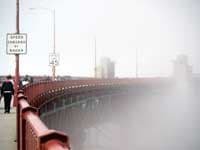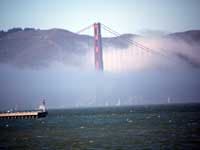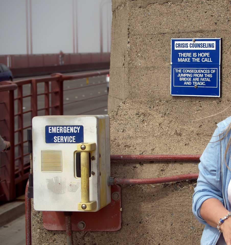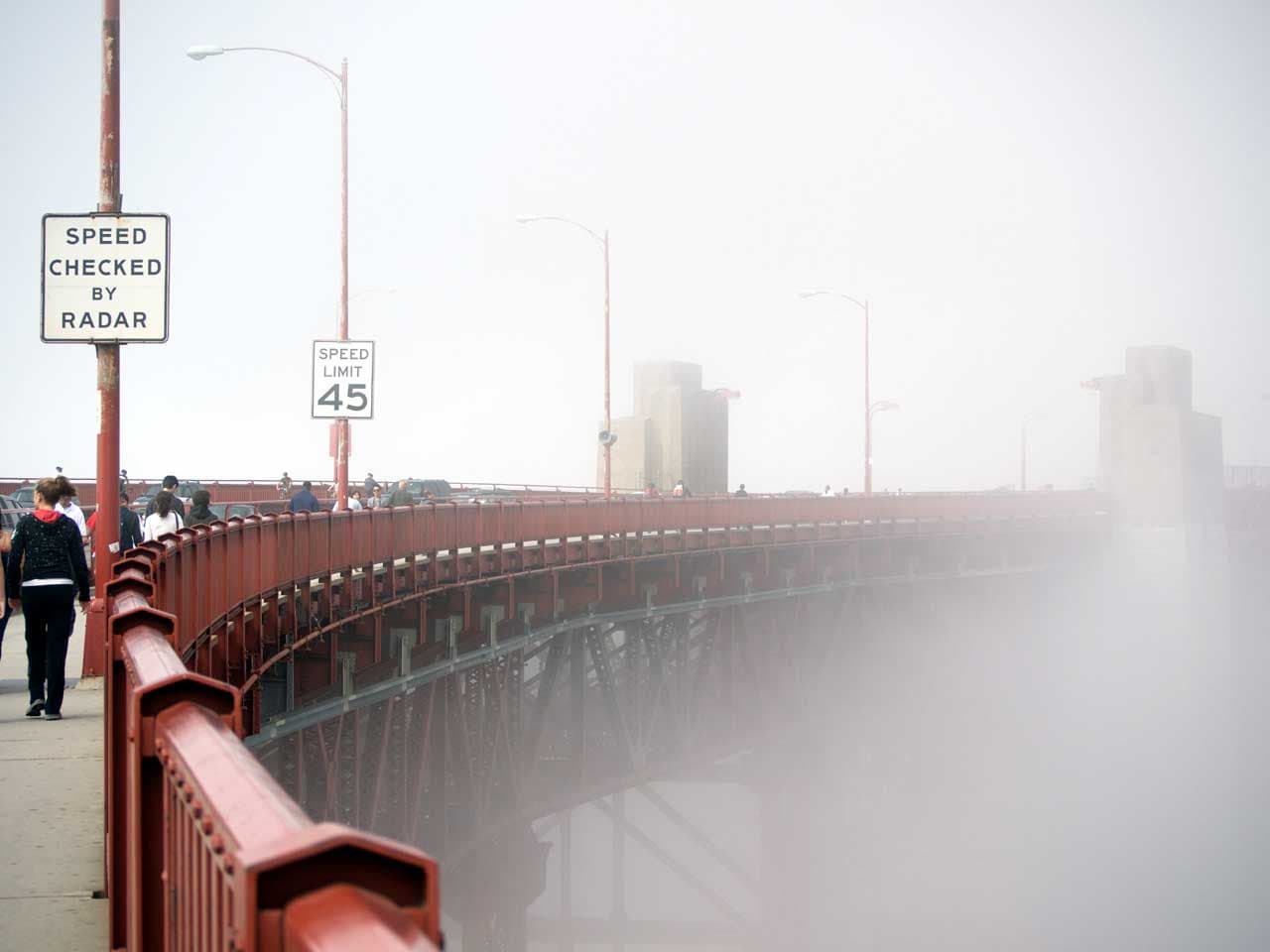 На самом мосту Golden Gate Bridge сразу перед местом, где заканчиваются высокие ограждения из сетки, препятствующие желающим поплевать вниз или даже спрыгнуть, можно увидеть специально установленный телефон и напоминание, что надежда умирает последней. Сам мост конечно монументален и огромен, ведь под ним могут проплывать настоящие океанские лайнеры.