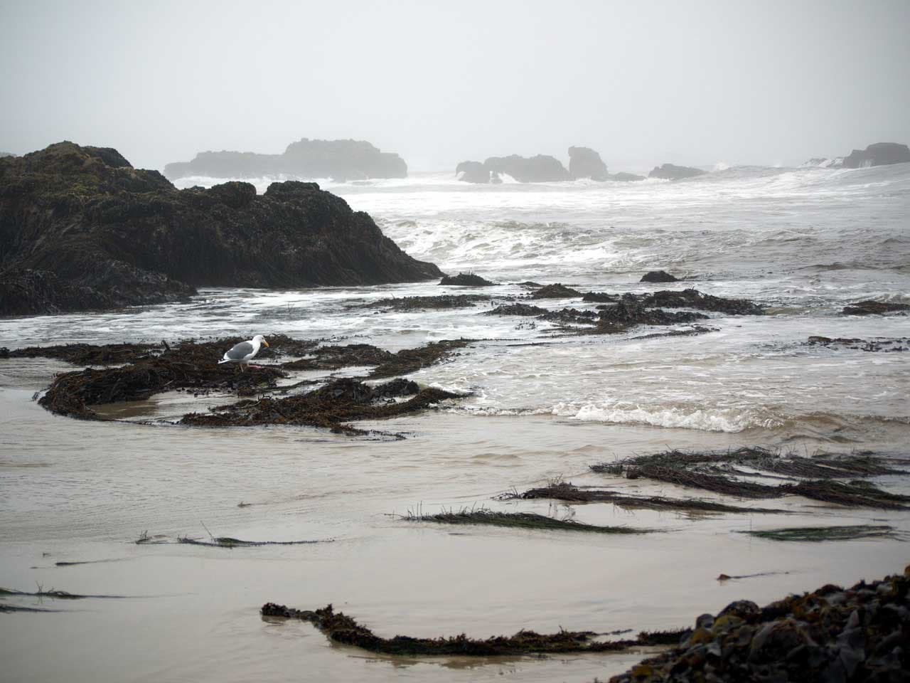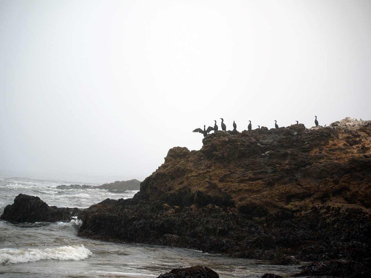 При возможности обязательно стоит посмотреть океанское побережье вне городов. Потому что атмосфера там иная, там чувствуется, что океан это настоящая стихия, мощная и дикая. На побережье нас встретил опять густой туман и резко понизившаяся температуру воздуха. Зато запах океана — насыщенный минералами и солями — стоит того, чтобы немного померзнуть на Piskadero Beach. Во время отлива океан отступает и у множества пернатых начинается время пира, т.к. на обнажившемся океанском дне есть чем поживиться.
