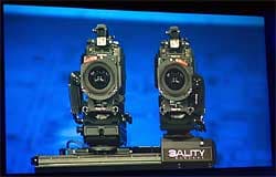 Затем вышел Говард Постли, который рассказал, как они снимают на две камеры с каждой точки, чтобы получить не просто 3D-видео, а еще и с возможностью смены ракурса. Справа на фото пара камер для съемки 3D-видео с одной точки. Заодно Говард посетовал, что огромная проблема это куча медных проводов, по которым передают отснятое видео в цифром виде с камер. Джастин Раттнер сразу не преминул заметить, что у Intel есть новая высокоскоростная оптическая технология ввода/вывода от под кодовым названием Light Peak. Новая технология обеспечит нужную пропускную способность с запасом и гибкость, при этом значительно упростит процесс передачи данных и повзолит снизить издержки за счет сокращения количества соединительных проводов. В итоге 50 медных кабелей, необходимых сегодня для передачи 3D-изображения, могут быть замены одним единственным оптическим кабелем с технологией Light Peak. Кстати, высокая пропускная способность оптических кабелей позволяет параллельно передавать множество разных потоков данных.