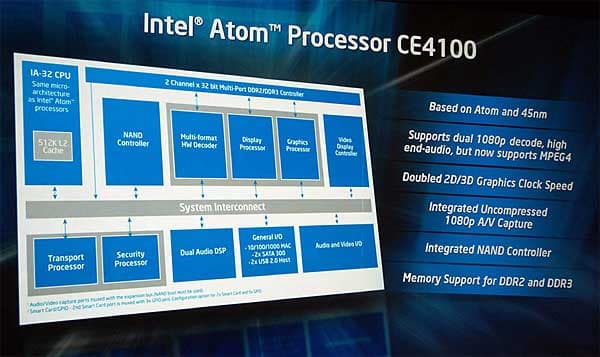 - Эхо IDF 2009: выпуск SoC Intel Atom CE4100 — процессора для пользовательской электроники
