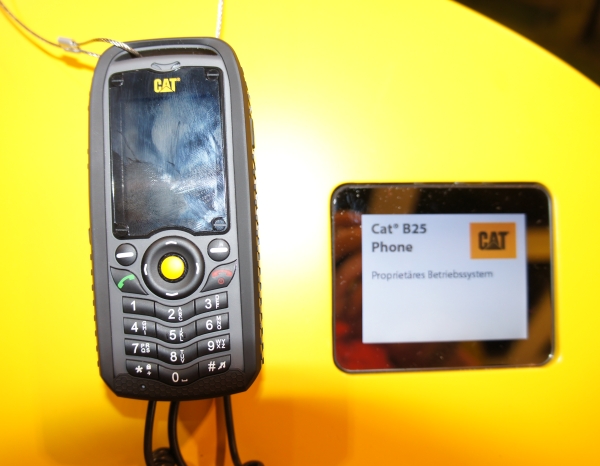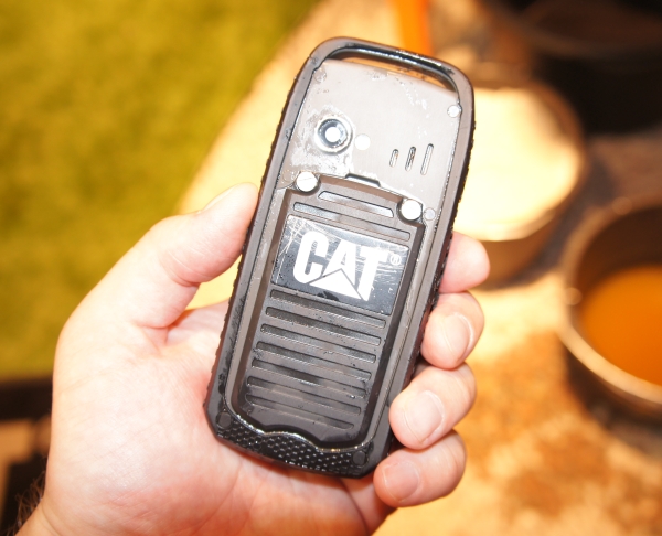 Закончить свой репортаж мне хотелось бы чрезвычайно любопытными снимками, которые удалось сделать на стенде одной очень известной промышленной компании, занимающейся производством строительной техники. Землеройная техника и тракторы Caterpillar известны во всем мире, а вот об их телефонах я услышал впервые.