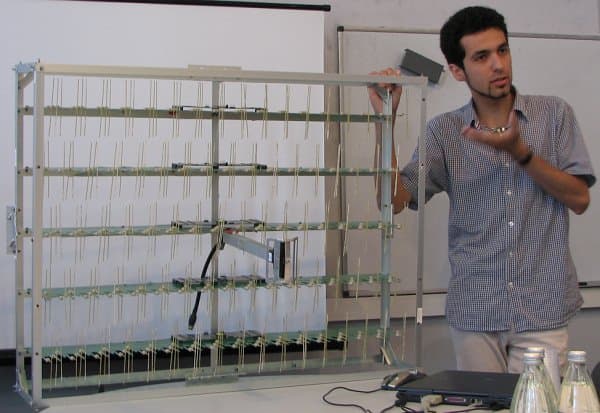 Более неожиданной оказалась направленность второй лаборатории — физические основы и технологии беспроводной связи (WLLab) на радиофизическом факультете. Нет, о серьезнейшей заинтересованности и ведущем положении Intel в области беспроводных технологий мы, конечно, прекрасно осведомлены, просто Нижний Новгород издалека (из Москвы :)) представлялся для компании городом, в первую очередь, «софтовым». О высоком уровне выполняемой стажерами образовательной и научно-исследовательской деятельности однозначно свидетельствует практическое применение результатов этих работ. Так, в числе прочего, нам был продемонстрирован итог проекта «Адаптивная антенна для дальних Wi-Fi-каналов связи» (на фотографии выше) — очень недорогая сканирующая антенная решетка с предельно низким энергопотреблением (и управляющее ПО к ней). В настоящее время проект почти достиг стадии массового промышленного производства, в результате чего удаленные от «центров цивилизации» точки смогут получать относительно дешевый интернет от почти стандартных точек доступа Wi-Fi, только радиус их действия указанные антенные системы способны расширить до десятков километров, не накладывая при этом практически никаких ограничений на условия монтажа конкретного антенного модуля.