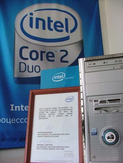 Также многие ответы на технические вопросы будут освещены в ближайшее время силами инженеров московского офиса Intel и мы постараемся выделить те вопросы, которые не были заданы высокопоставленным сотрудникам корпорации. Следите за материалами на сайте, читайте журнал iXBT.com. Новая «порция» ответов на вопросы и отчёт о награждении появится на сайте в скором времени.
