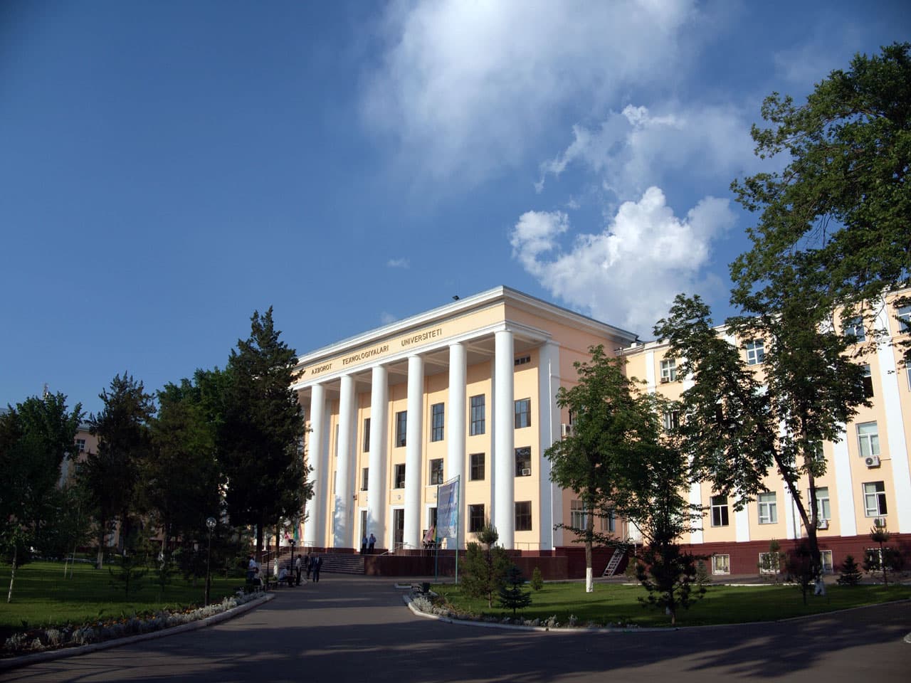Нам повезло и мы посетили Ташкентский университет информационных технологий (ТУИТ), являющийся ведущим вузом страны. Узнаваемым символом ТУИТ являются восемь колонн фасада головного здания. В этом году ТУИТ исполняется 55 лет.