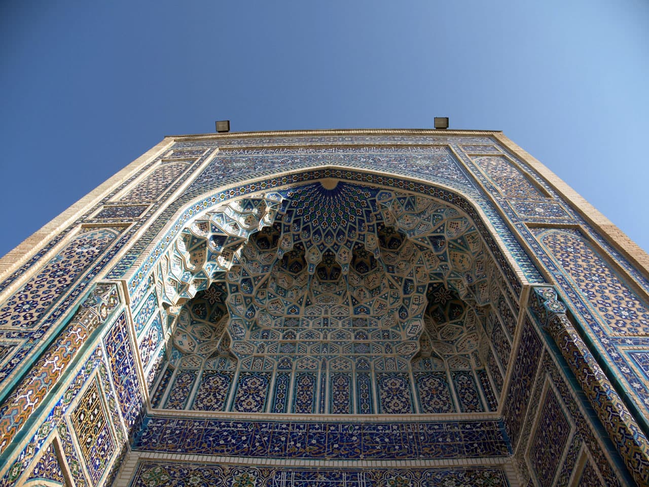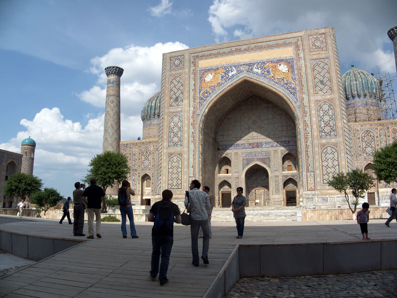 Но вернемся к Самарканду и его достопримечательностям. Мы посетили Регистан — площадь трех медресе (медресе Улугбека, медресе Шердор и медресе Тилля-Кари). Примечательна мозаика на одной из медресе Шердор — там есть изображения тигров, что для ислама большая редкость. Вообще, несмотря на то, что в Узбекистане преобладает ислам, нет ощущения, что тут все поглощены религией. Скорее наоборот. Все очень демократично — хочешь соблюдать традиции — соблюдай, а нет — никто камнями не побьет. Можно легко встретить на улице пару школьниц, одна из которых будет вся укутана в одеяние, только глаза сверкают, а вторая идет рядом в мини-юбке и обе мило щебечут о своем. Наверное, хорошим определением общества в Узбекистане будет слово «терпимость». И это замечательно.