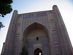 В Самарканде мы побывали в гробнице Тимура (мавзолей Гур-Эмир), в мечете Биби Ханум, любимой жены Тимура, и комплексе мавзолеев Шахи Зинда. Разумеется, посетили мы и базар.