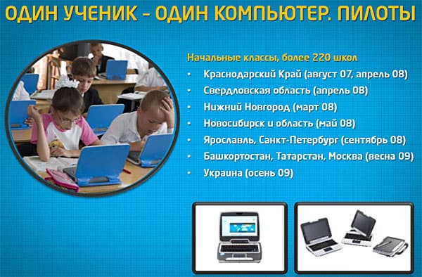 В рамках программы Intel обеспечивает помощь местным властям в создании локального производства нетбуков. В результате достигается и положительный побочный эффект — новое современное производство, новые рабочие места. Обычно нетбуки для школьников не раздаются бесплатно, т.к. такие подарки не ценят, а дотируются в разной степени государством. Например, малоимущим семьям будет предложено заплатить всего 10% от стоимости нетбука, а семьям с достатком нужно будет оплатить 50%, остальную стоимость компенсирует государство, спонсоры или органы местной власти. Ориентировочная стоимость школьного нетбука, носящего общее кодовое имя ClassmatePC, находится возле отметки в 300 USD, при этом корпус такого нетбука защищен от ударов и падений, которые неизбежны в школьных условиях.