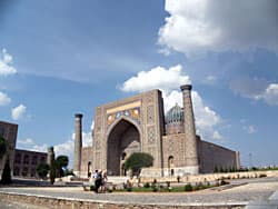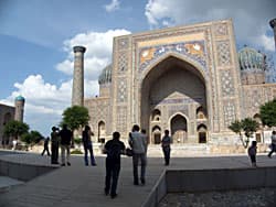 После Ташкента мы отправились в Самарканд, древнюю столицу империи Тимуридов. Дороги в Узбекистане, в целом, нормальные, где-то получше, где-то похуже. На дорогах регулярно встречаются посты дорожной милиции и даже бойцы в кустах с аппаратом для замера скорости. Все такое знакомое и родное. Кстати, попасть на службу в милицию не так и просто, для этого нужно отслужить в армии. Попасть в армию тоже непросто, хотя она формируется, как и у нас, по призыву, берут туда не всех подряд. Более того, если вы не хотите служить положенный год, вы можете заплатить официально 300 долларов в кассу и пройти месячные курсы резервиста. Никакой альтернативной службы не требуется.